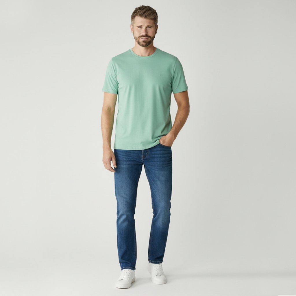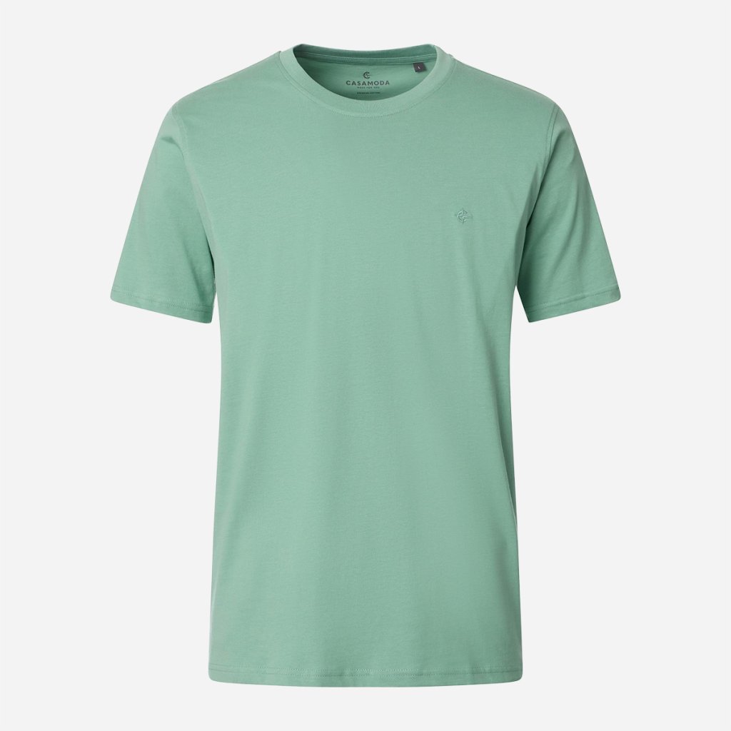 Svetlozelené tričko CASAMODA je voľbou pre džentlmena, ktorý si potrpí na detaily. Tento odtieň mentolovej je vizuálne čistý a skvele dopĺňa paletu neutrálnych farieb, pričom celému outfitu dodáva potrebný „drive“.