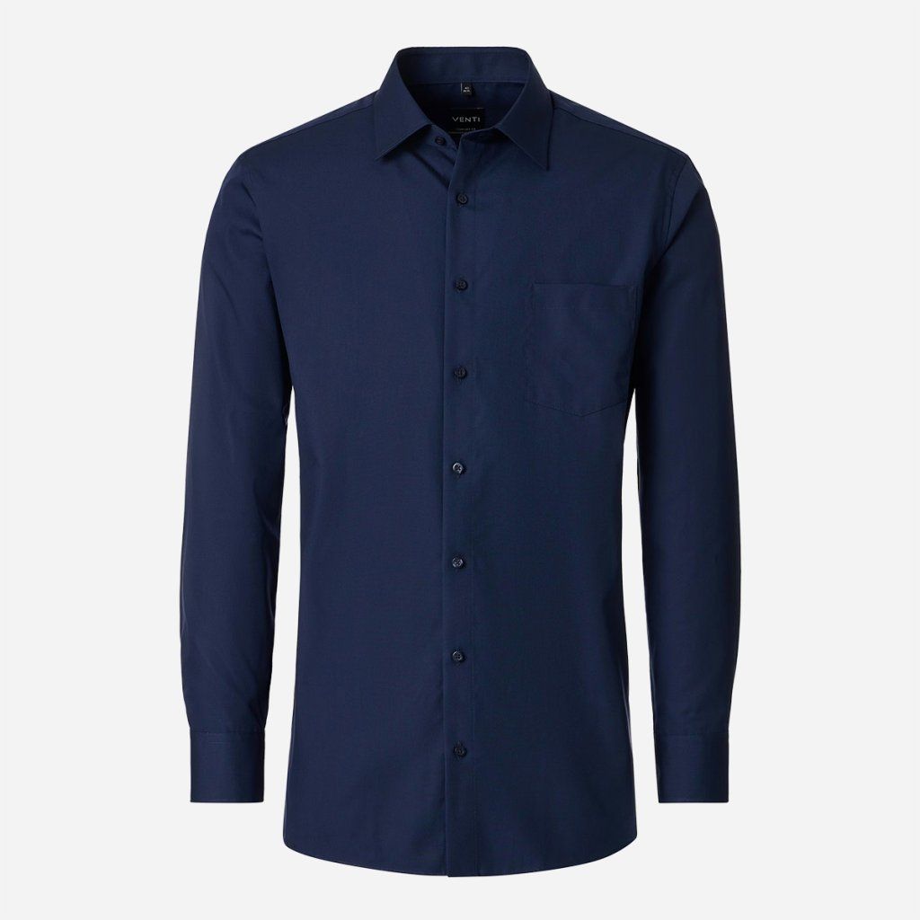 Pánska košeľa VENTI v tmavomodrej farbe je teraz dostupná aj vo veľkostiach 47 až 56. Tmavomodrá je farbou, ktorá vyjadruje dôveru a profesionalitu – a práve preto je ideálnou voľbou pre mužov väčšej postavy, ktorí chcú v práci aj na spoločenských udalostiach pôsobiť sebaisto a reprezentatívne. Popelínová bavlna zaručuje priedušnosť a príjemný dotyk na pokožke počas celého dňa.