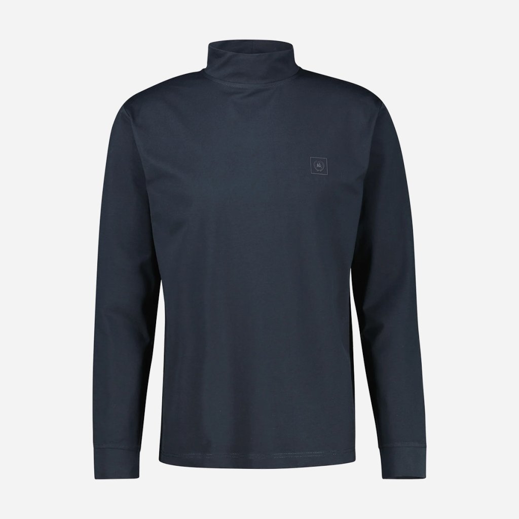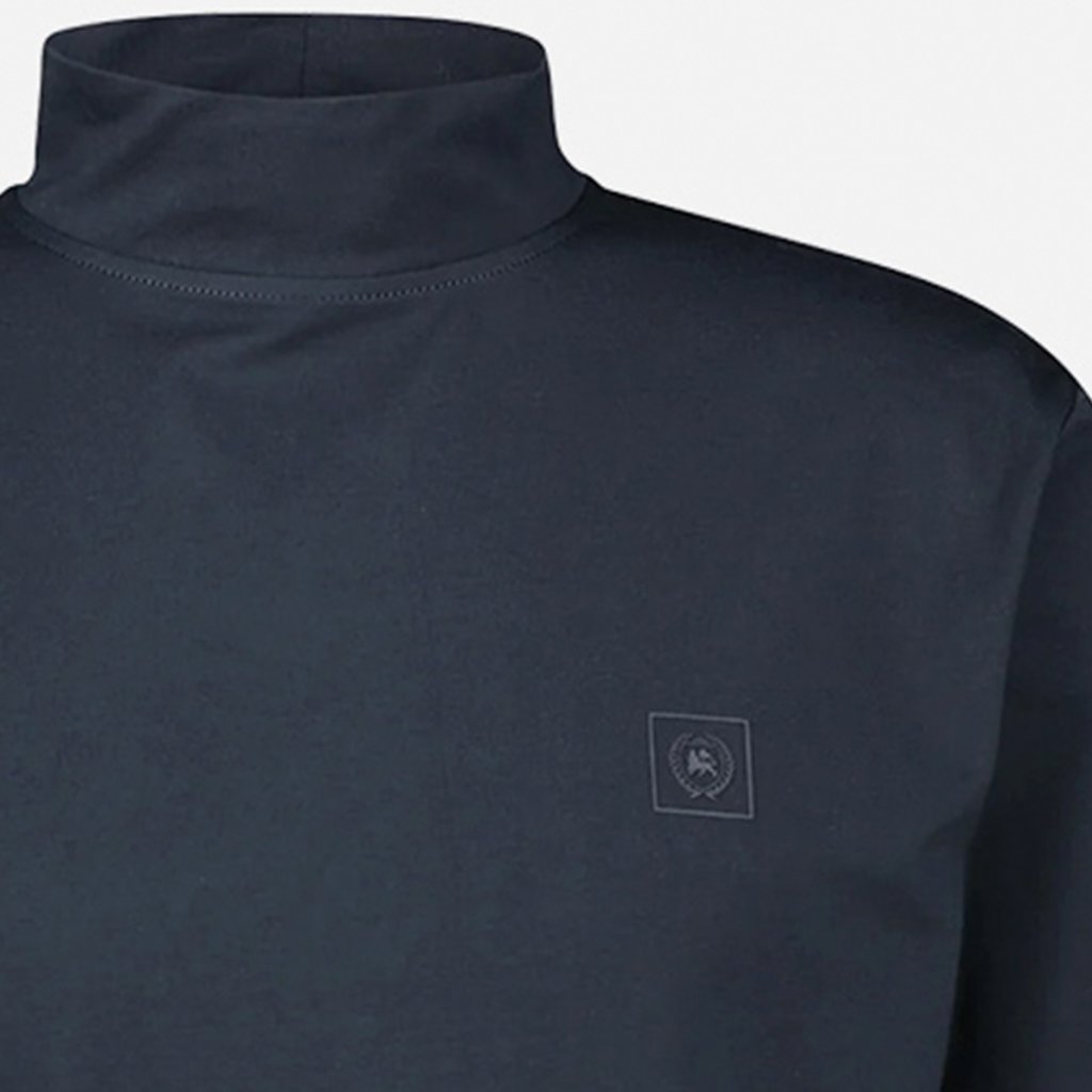 Moderný, rovný strih s otvorenými lemami pôsobí ležérne, zatiaľ čo rolákový golier pridáva elegantný nádych. Na hrudi nechýba decentná nášivka s logom LERROS, ktorá podčiarkuje kvalitu a čistý dizajn.