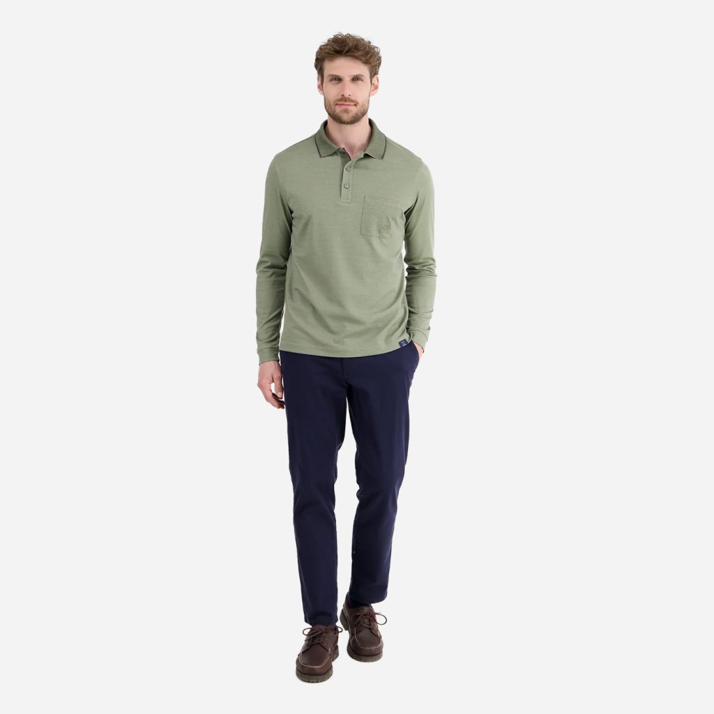 Materiálová zmes kvalitnej bavlny a syntetických vlákien poskytuje mäkký a štruktúrovaný pocit, ktorý je príjemný na pokožke a zároveň praktický na údržbu. Náprsné vrecko dopĺňa dizajn a zvyšuje praktickosť.