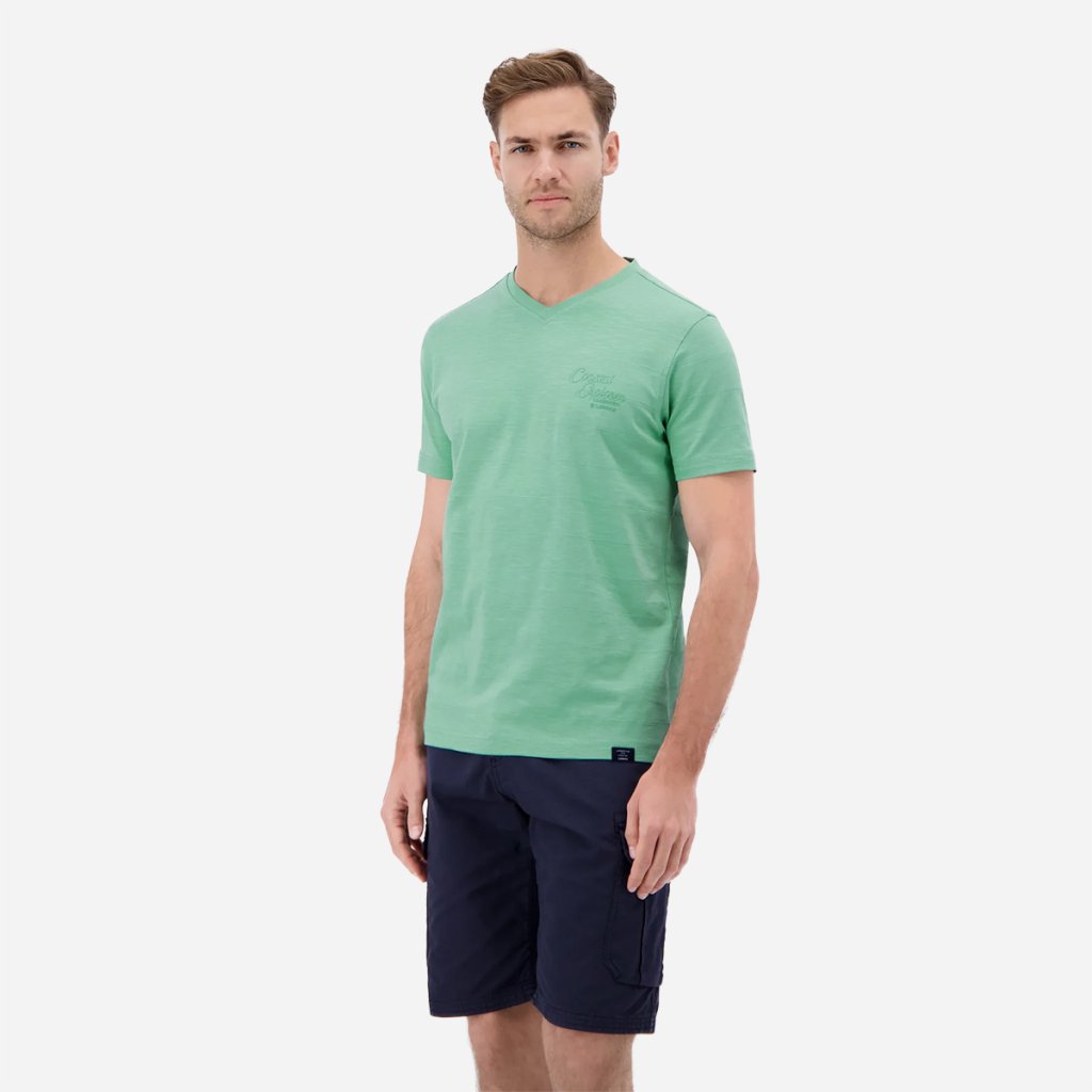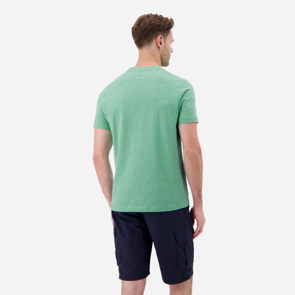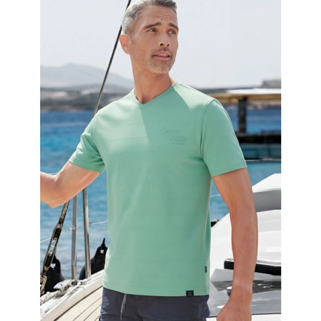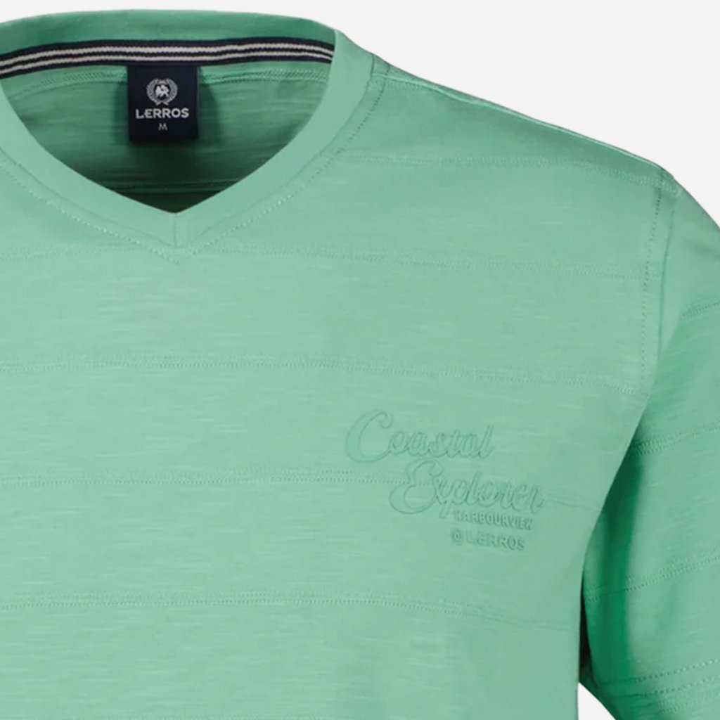 Prepracovaný dizajn s jemným prúžkovaným vzorom dodáva tričku hĺbku a eleganciu. Rebrovaný výstrih do tvaru V opticky predlžuje postavu a dodáva outfitu moderný punc. Celkový vzhľad dopĺňa vkusná potlač na hrudi, ktorá podčiarkuje ležérny charakter značky LERROS. Každý šev a detail svedčí o dôslednom spracovaní, ktoré zaručuje, že vám tento kúsok bude robiť radosť dlhú dobu.
